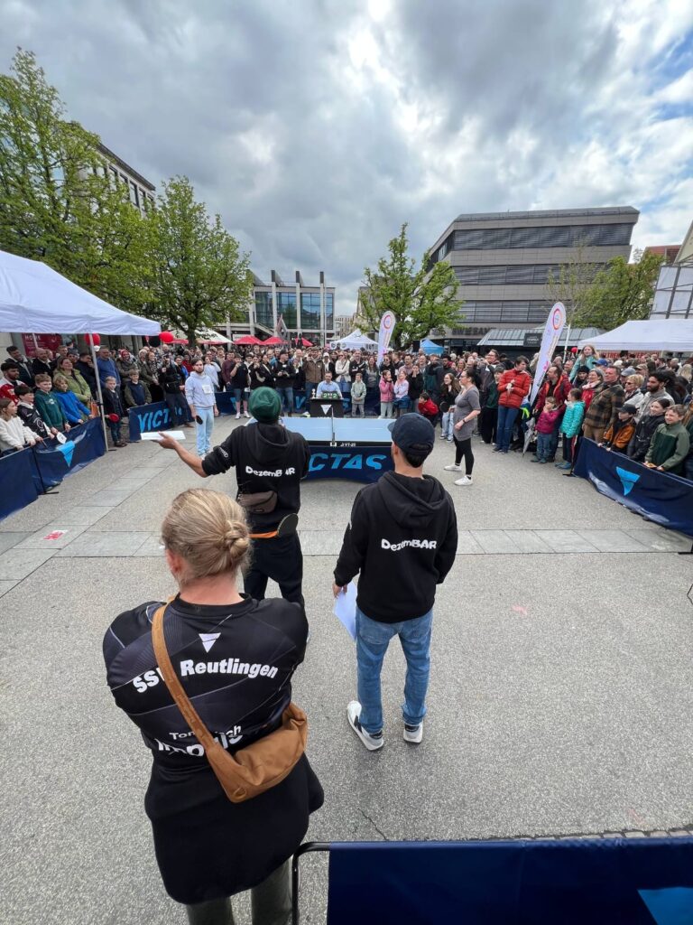 Der Reutlinger Marktplatz verwandelte sich an diesem Tag in eine riesige Tischtennis-Arena. Spielerinnen und Spieler aller Altersklassen, Vereinsmitglieder, Hobbyspieler und Zuschauer sorgten gemeinsam für eine einzigartige Atmosphäre.